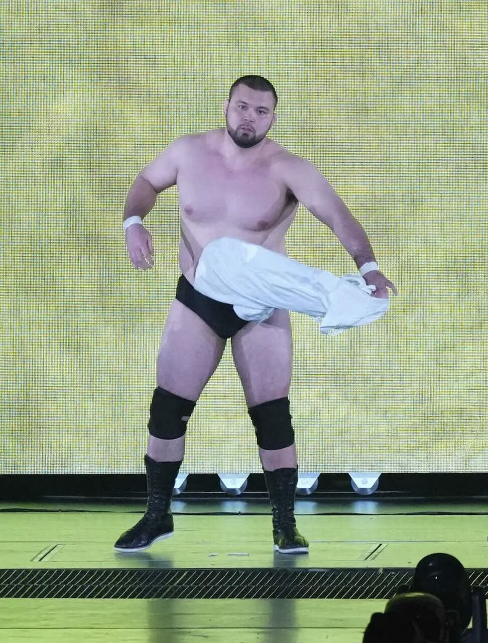 →デビュー戦のウルフ、坊主になり柔道着ではなくレスリングパンツで入場!w