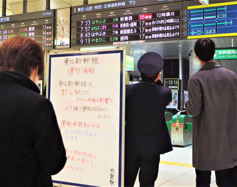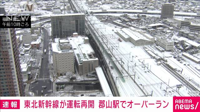 | | 東北新幹線 福島・郡山駅でオーバーラン 東北新幹線や山形新幹線などが約2時間半にわたり運転見合わせ …東北新幹線がけさ、福島県の郡山駅でオーバーランした影響で、東北新幹線や山形新幹線などがおよそ2時間半にわたって運転を見合わせました。 雪の郡山駅。画… (出典:TBS NEWS DIG Powered by JNN) |