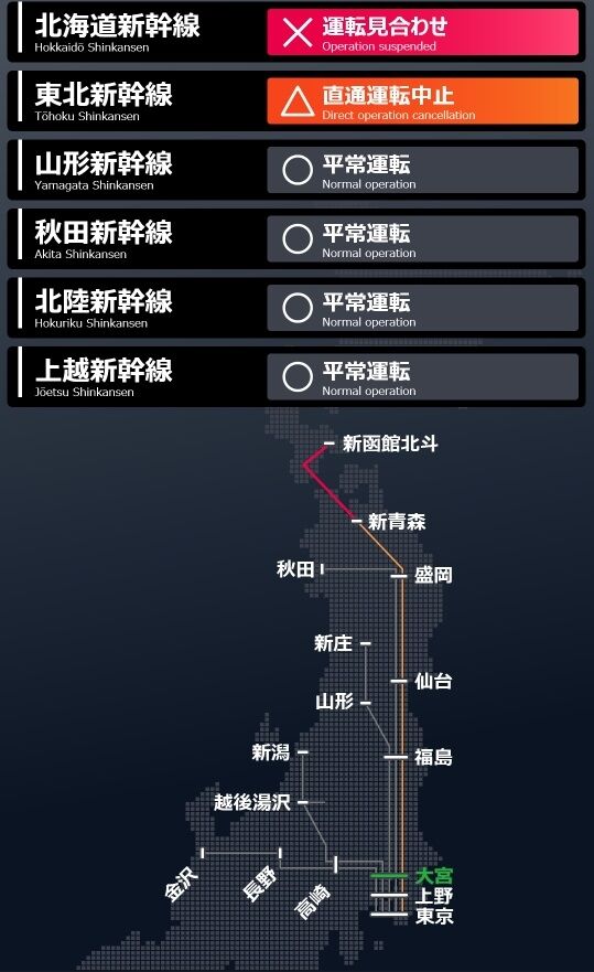 @tero1947691【速報】 東北新幹線 東京ー盛岡 運転見合わせ 上下線 再開の見通し立たず 郡山駅でオーバーラン tinyurl.com/ysthtnqh