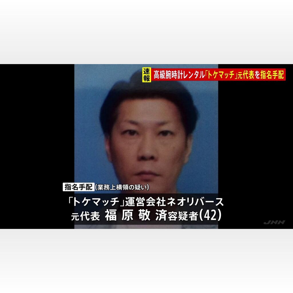 @aruaru_Sagishi時計のシェアリングサービス「トケマッチ」の代表・福原敬済容疑者が業務上横領の疑いで指名手配! 海外逃亡してるとのことです!! pic.twitter.com/FV3nWEC0ER
