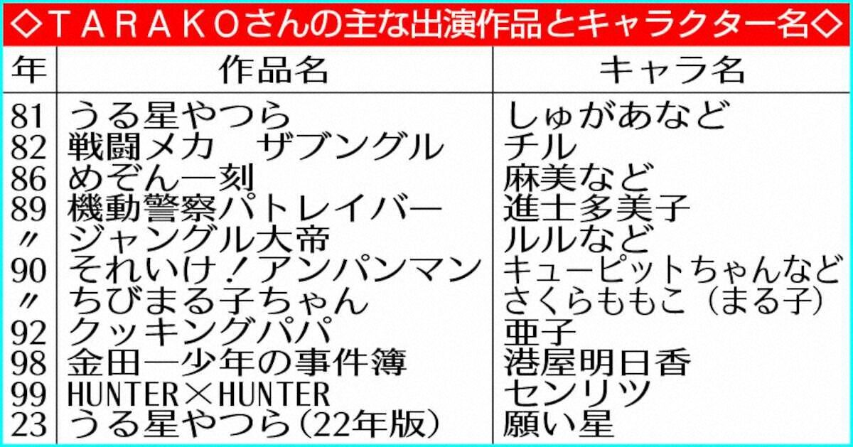 | TARAKOさん まる子に命を吹き込み続け…さくらさん「お別れの会」で涙誘った“まる子の弔辞” - スポニチアネックス Sponichi Annex (出典:スポニチアネックス Sponichi Annex) |