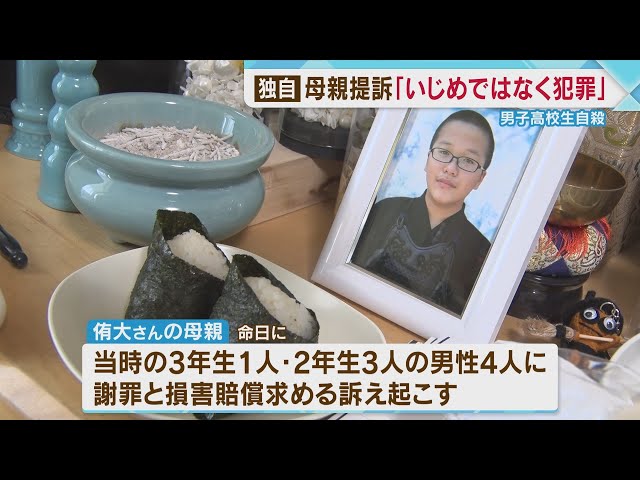 @nqrxTpsKpAeeA9E【独自】亡くなった高校生の命日に 上級生相手取り母親が提訴 「いじめではなく犯罪」 今も謝罪なく 福岡。福岡県宗像市の私立高校に通っていた男子生徒が自殺、男子生徒の母親が、継続的ないじめを行ったとして部活動の上級生だった男性4人に謝罪と損害賠償を求める訴え l.smartnews.com/xMZYX