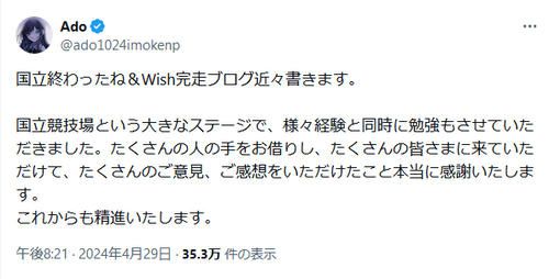 @reiwadon701Adoの国立ライブ 音響非難する声 2024年4月29日 news.yahoo.co.jp/pickup/6499505