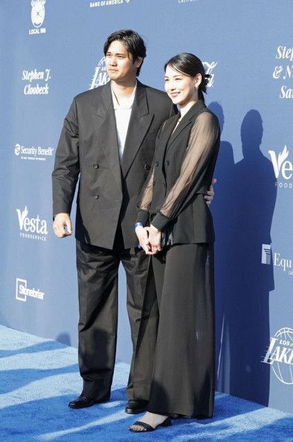 @j2zfyz#ドジャース #大谷翔平 選手が球団のイベントに妻・真美子さんと2人で登場しました 大谷選手はダブルボタンの黒のスーツ、真美子さんは腕がシースルーの黒のドレスとおそろいのブラックコーディネートを披露… pic.twitter.com/jyXAXE4q7i