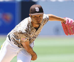 @flagname0506ヤッタネ200勝!ダルビッシュがブレーブス戦に登板。初回は2死から3番オズナにツーベースを打たれたものの、4番オルソンを三振。以降、スコアボードに0を並べ、7回までで毎回の9奪三振、自身25イニング連続無失点の記録も伸ばした。野茂英雄氏、黒田博樹氏に続く日米通算200勝を達成した。おめでとう!