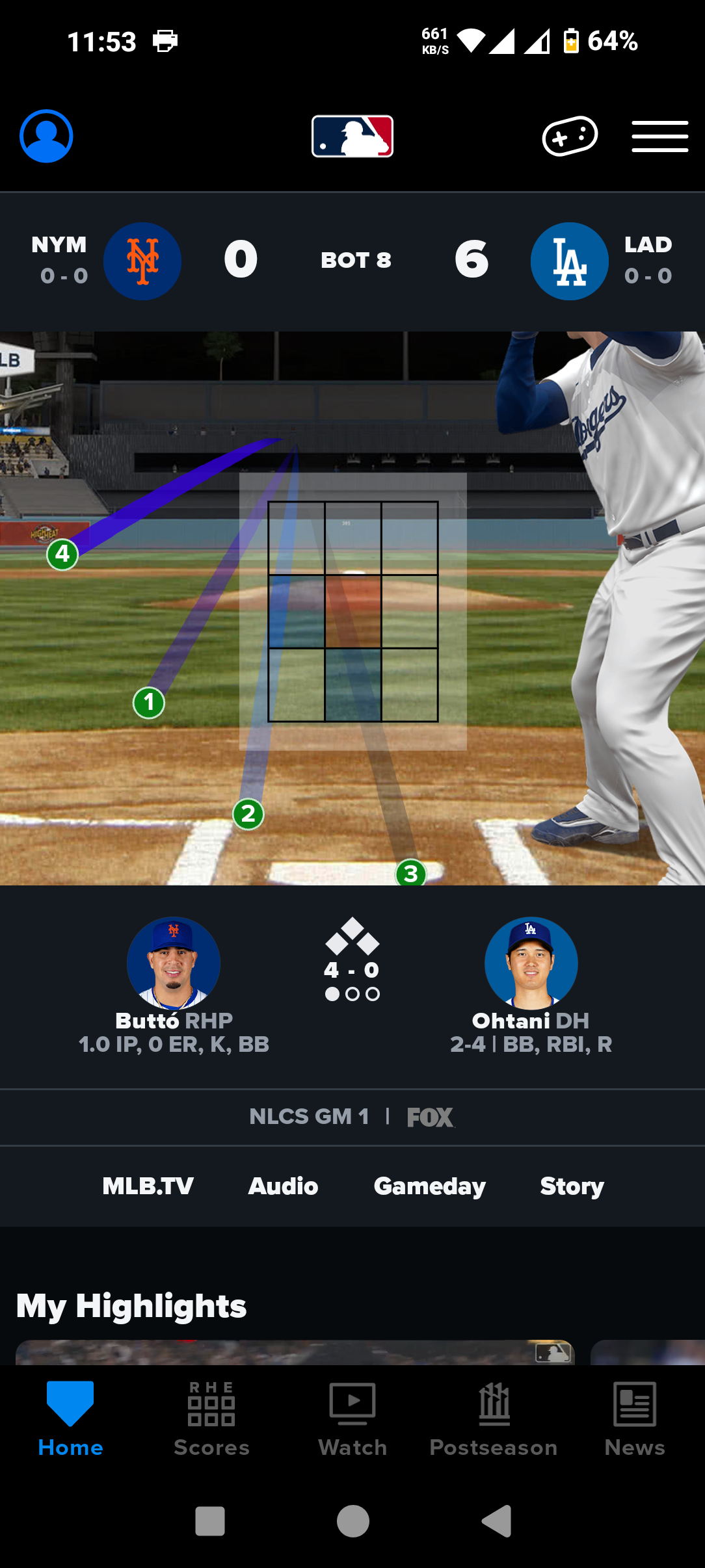 大谷はメッツの先発・キンタナの2球目を強振すると、打球速度117.8マイル(約189.5キロ)、飛距離422フィート(約129メートル)の打球を右中間に飛ばした。第2打席から第4打席までは四球で出塁すると、全て生還するなどドジャースの攻勢をけん引した。8回2死満塁で迎えた第6打席は見逃し三振に倒れた。
