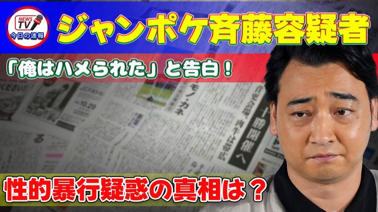 10月7日、20代の女性に対する性的暴行をした容疑で書類送検された、元ジャングルポケットの斉藤慎二容疑者(41)は、芸人仲間にこう吹聴しているという。
