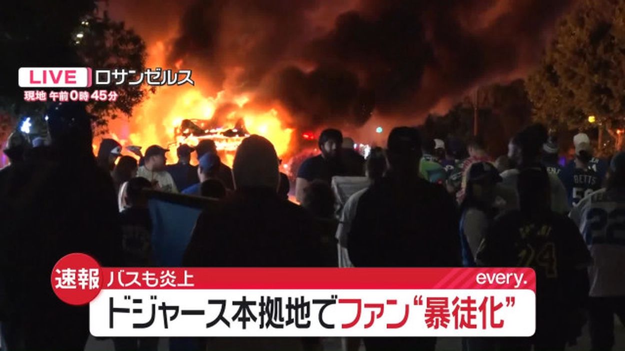 | ドジャースWS制覇も…ファンが“暴徒化”で騒動 バスが炎上 …大谷翔平選手、山本由伸投手が所属するドジャースが、4年ぶりにワールドシリーズを制覇しました。本拠地ロサンゼルスのドジャースタジアムから車で5分ほどの… (出典:) |