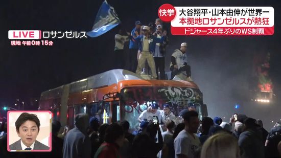 大谷翔平選手、山本由伸投手が所属するドジャースが、4年ぶりにワールドシリーズを制覇しました。本拠地ロサンゼルスのドジャースタジアムから車で5分ほどの場所では、ファンが車道を占拠するなど“暴徒化”している状態です。現地からの報告です。
