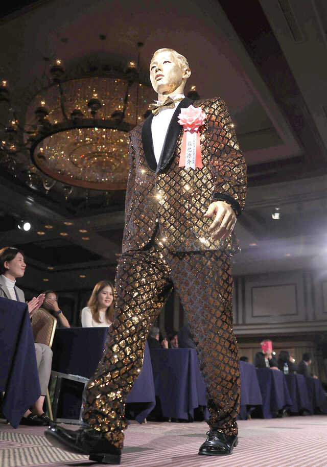 | 楽天・辰己涼介「約束どおり」“全身ゴールド”で登場 髪の毛と顔も金塗り、スーツはスパンコールのタキシード【GG賞表彰式】 …パ・リーグ外野手部門で4年連続4回目の受賞を果たした辰己涼介(27、楽天)が「全身ゴールド」で授賞式に出席。スーツはスパンコールのタキシードを身につ… (出典:) |