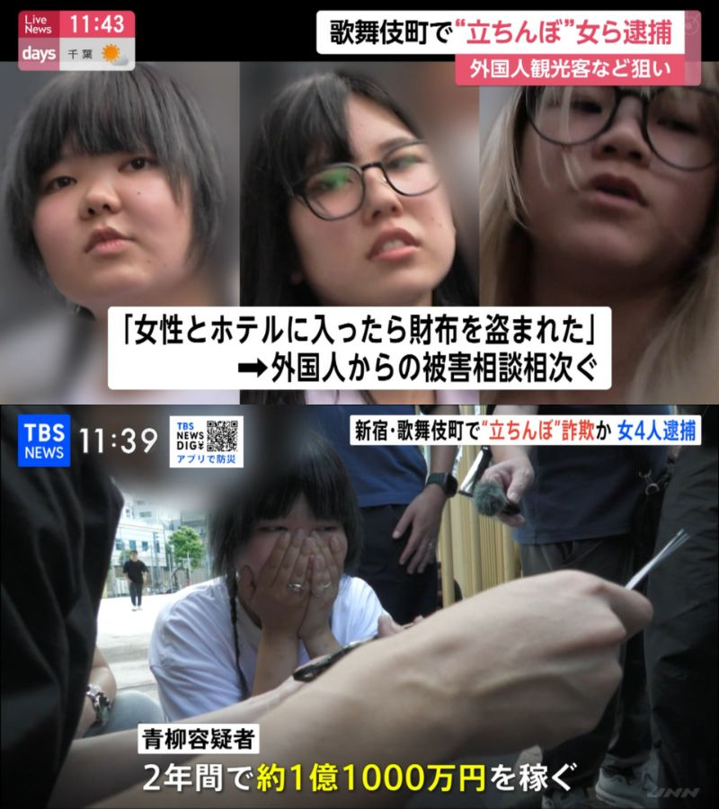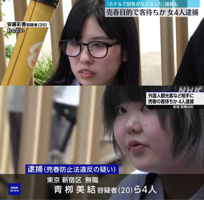 逮捕されたのは、青柳美結(20)、 安藤彩香(26)、西本愛桃(25)、内山夢叶(24)の4人。